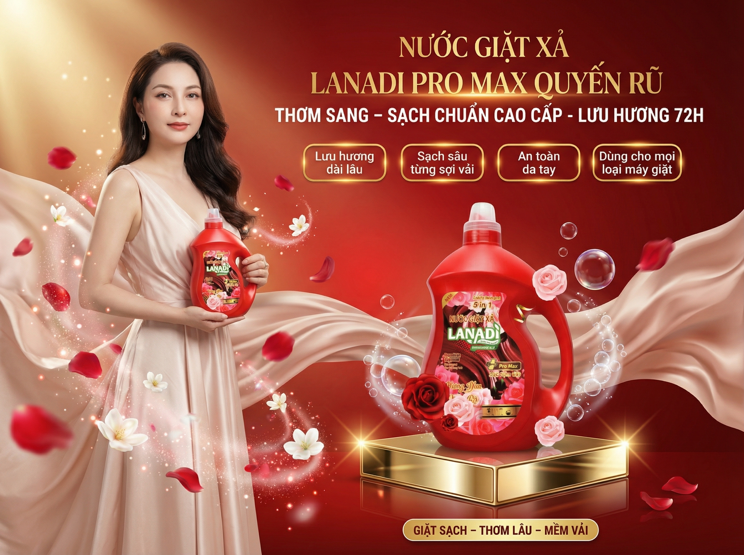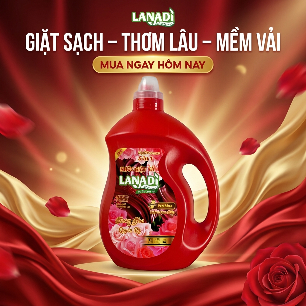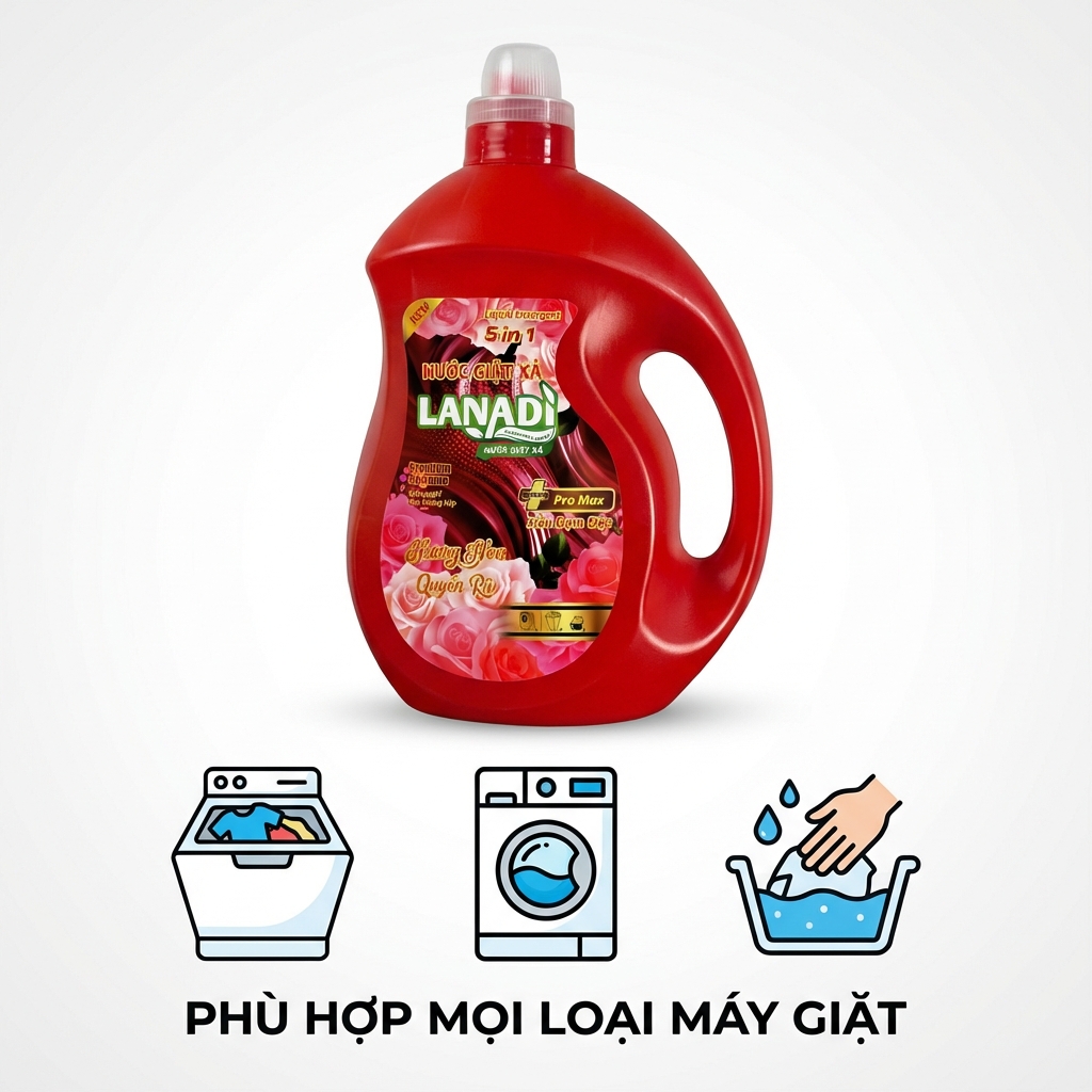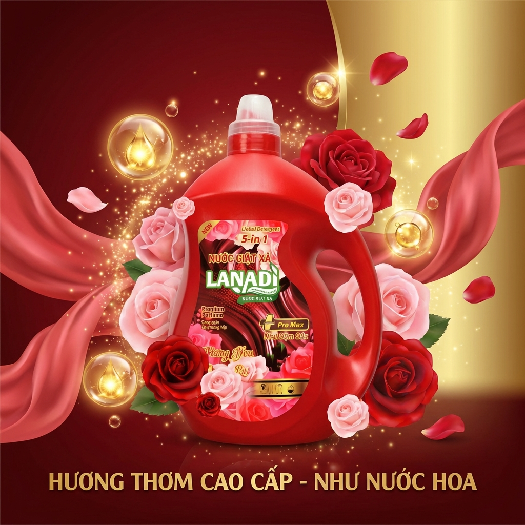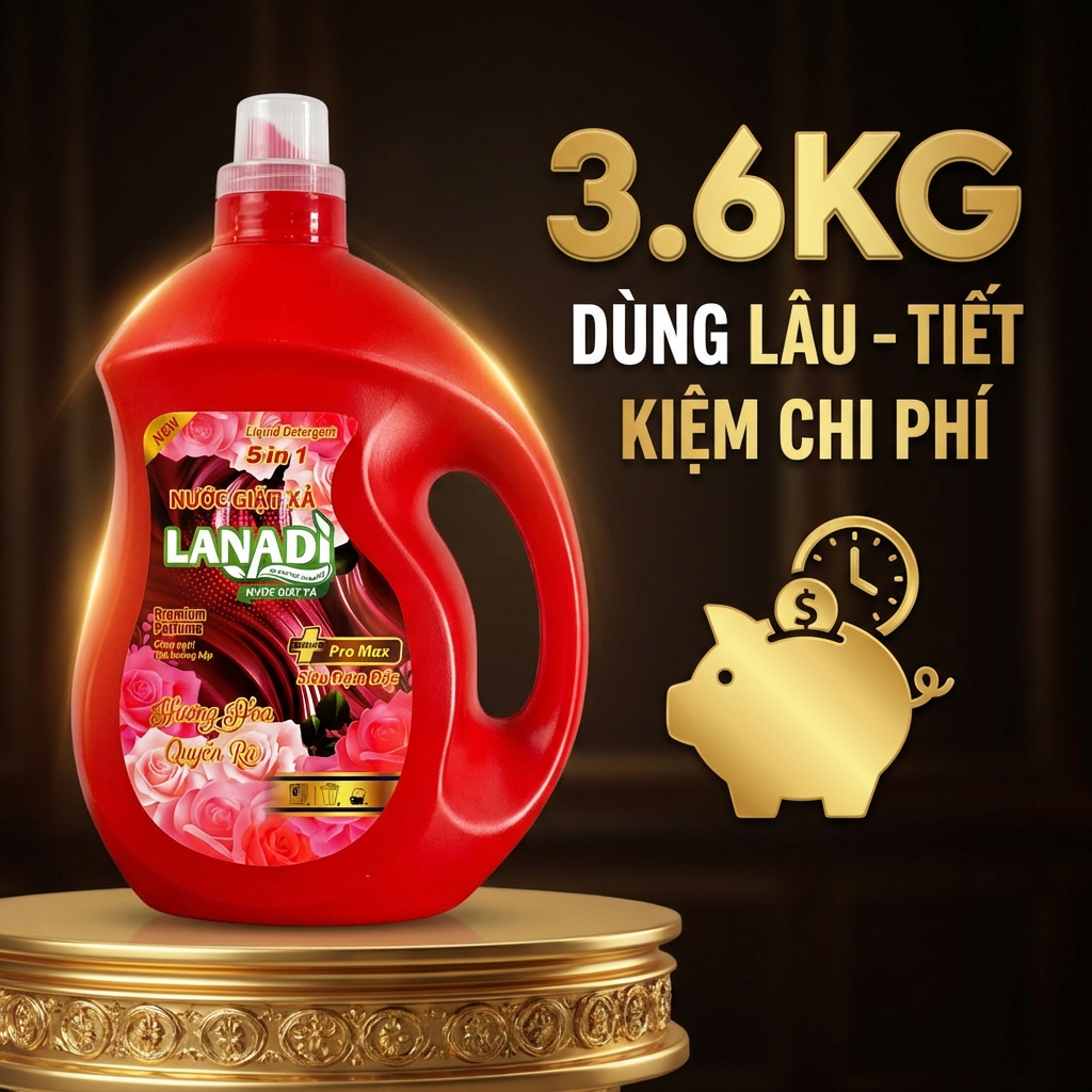 Nước Giặt Xả Lanadi Hương Nước Hoa Quyến Rũ Premium Pertume Phiên Bản Pro Max 5in1 Lưu Hương 72h – 3,6kg